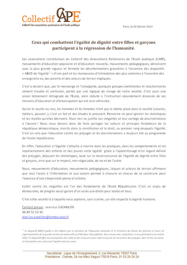 Vous trouverez ci-joint le communiqué signé des 20 associations du Collectif des Associations Partenaires de l’École publique (CAPE) dont l’association des Éclaireuses Éclaireurs de France (EEDF) est membre. Dans l’année où les EEDF vont célébrer les 50 ans de coéducation statutaire, nous soutenons et diffusons largement cet appel du CAPE