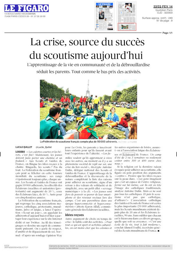 2014 : « Le Figaro » évoque le renouveau du scoutisme