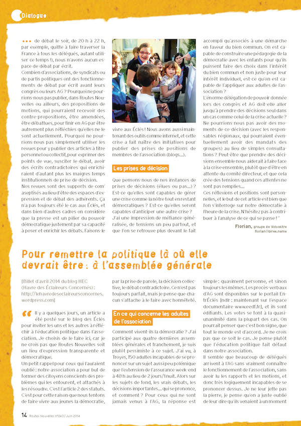 2014 : Routes Nouvelles de juin aborde un sujet important