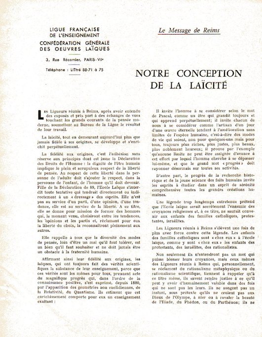 L’accent est mis sur la conception de la laïcité proposée par le Mouvement et la Ligue de l’Enseignement.