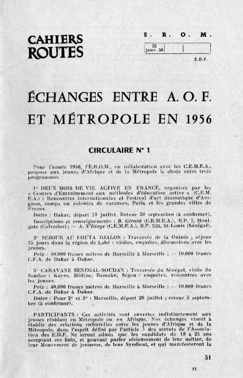 1954 – 1956 : Les débuts de l’EROM, équipe de relations avec l’Outre-Mer
