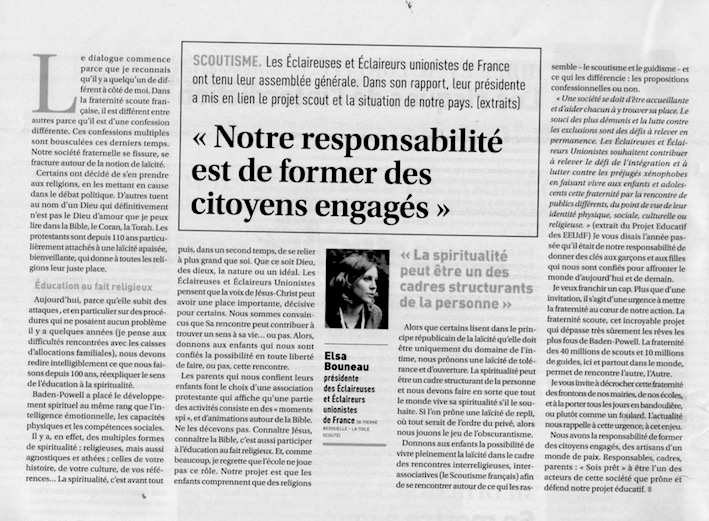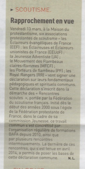 … une interview de la présidente des Éclaireuses & Éclaireurs Unionistes dans « Réforme » (12 mars 2015)