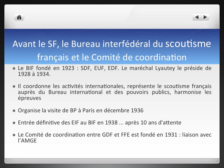 Le SF succède au Bureau interfédéral du scoutisme français (BIF) créé en 1923 et au Comité de coordination des associations féminines créé en 1931.
