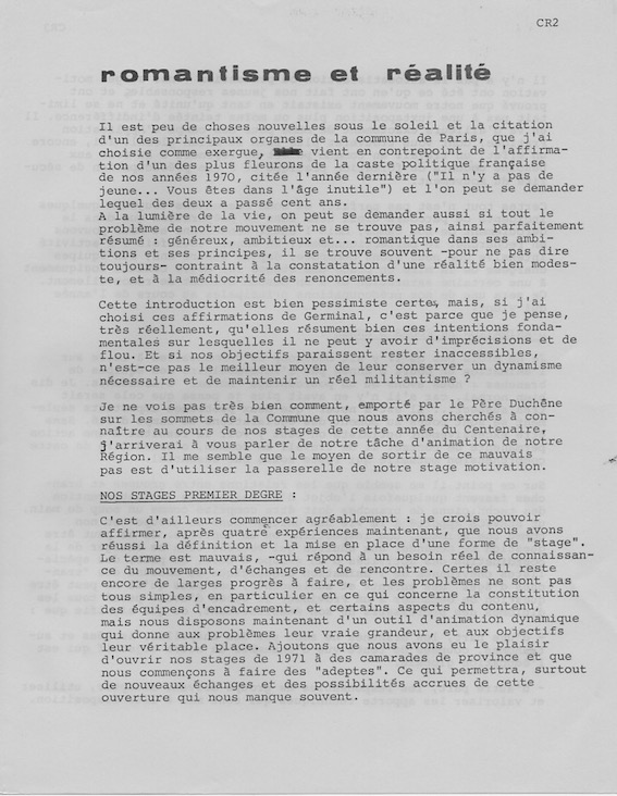 – présentation globale du « rapport moral » par le responsable régional, sous le titre « romantisme et réalité »,