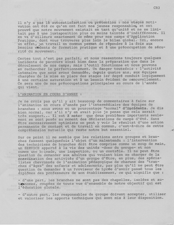 Ci-après, le « rapport moral » du responsable régional :