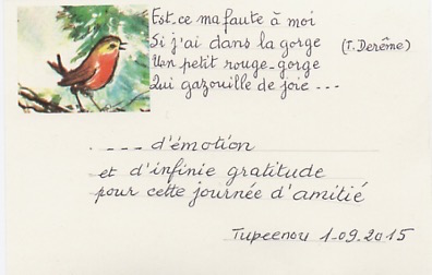 En conclusion, Tupeenou a remis à chacun une petite carte souvenir pleine de poésie :