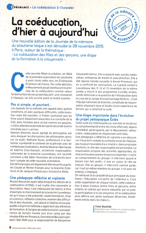 2016 : Retour sur la coéducation aujourd’hui…