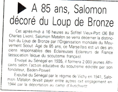 … avec Salomon Matalon, récompensé en 1997 par le « loup de bronze » de l’O.M.M.S.
