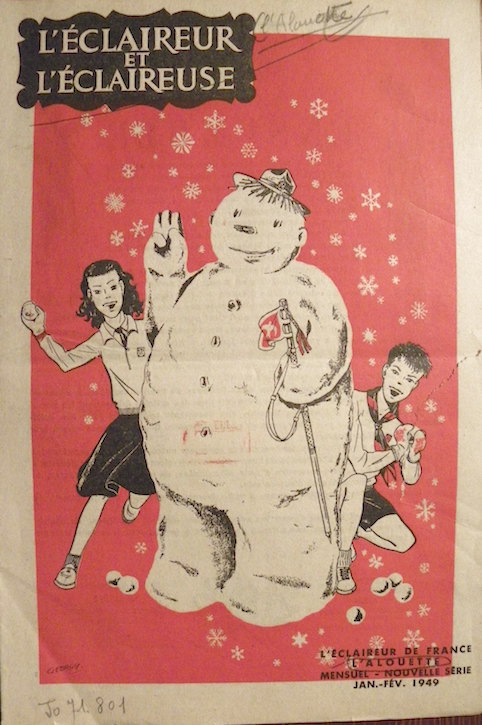 … La revue de branche traduit dans les faits la coopération de la Fédération Française des Éclaireuses, section Neutre, avec les Éclaireurs de France. Georgy ajoute des filles à ses illustrations.