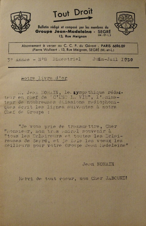 La lecture de cette revue « bimestrielle » est intéressante car elle présente une particularité : même après la rupture des projets de coopération entre la F.F.E.N. et les E.D.F., le groupe évoque une « compagnie » d’éclaireuses, apparemment rattachée à la F.F.E. dont le logo apparaît à côté du titre, symétriquement à celui des E.D.F..