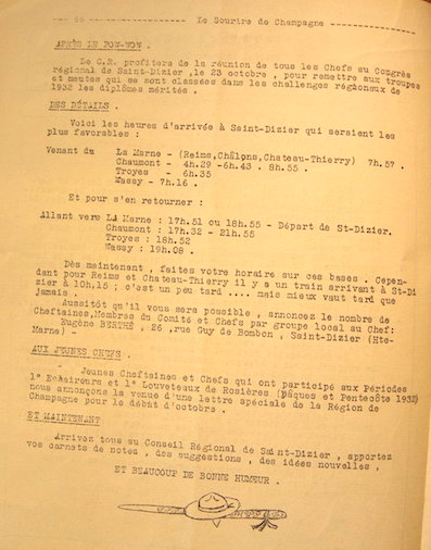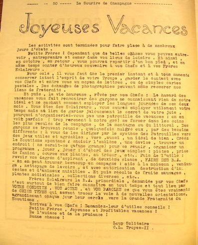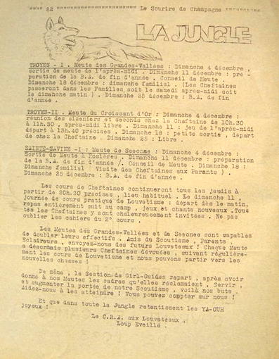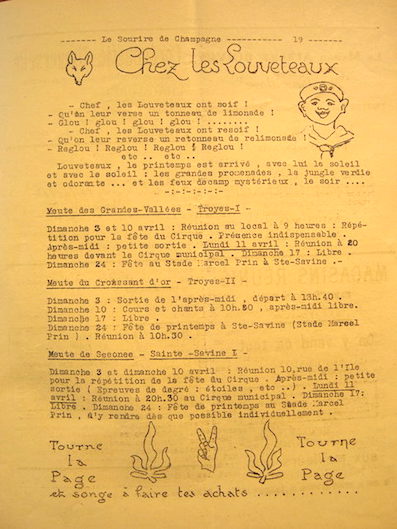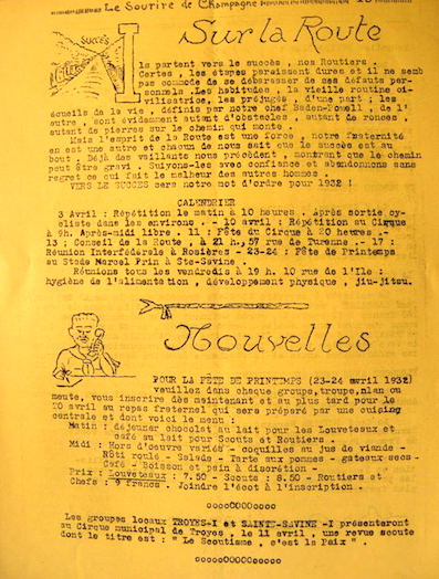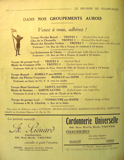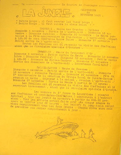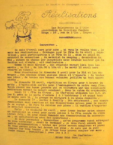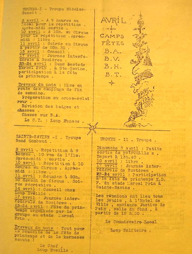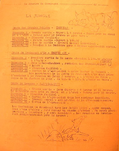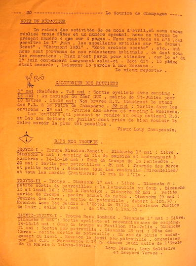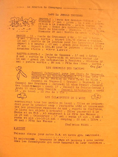 Nous en avons sélectionné quelques pages pour illustrer la vie très active de ces unités, qui ont, à la fois, une très bonne présence locale et une excellente participation aux rencontres nationales. À noter que le groupe de Troyes évoque l’existence d’une unité d’éclaireuses, ce qui semble indiquer qu’il était en avance sur son temps en ce qui concerne la (future) coéducation.