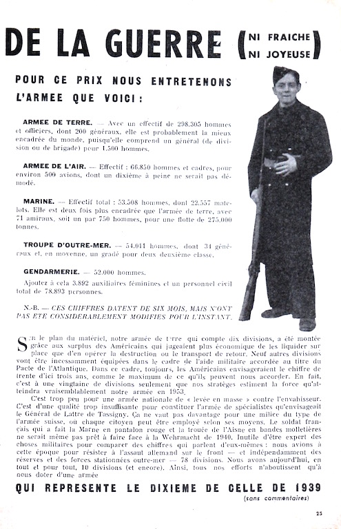 1950 : « Le Routier » publie un article sur le budget de la guerre
