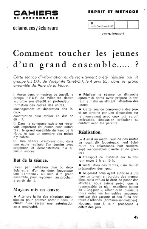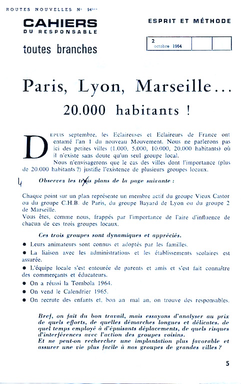1964 : un début de réflexion sur l’adaptation de notre scoutisme aux grandes villes