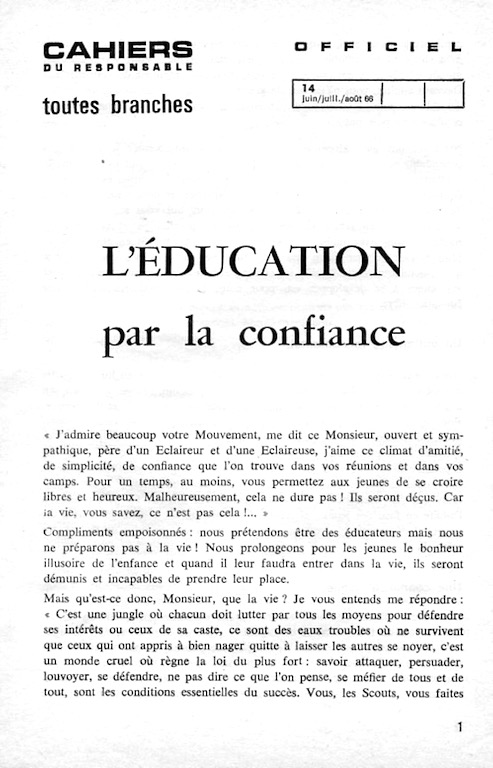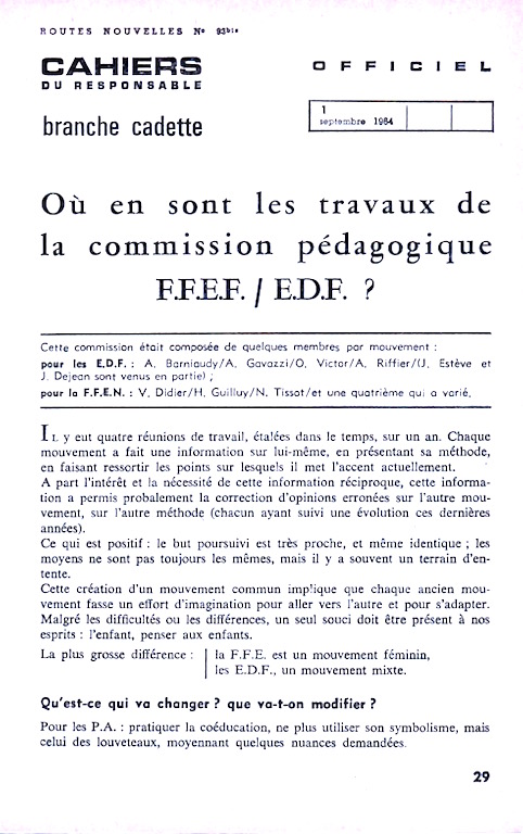 1964 : les Cahiers font le point sur une pédagogie commune de la branche « cadette »