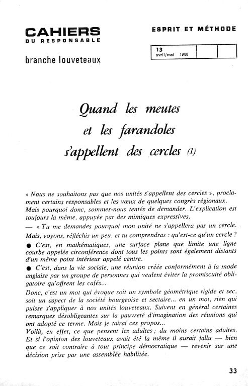 1964 : le fonctionnement de la branche Éclaireuses/Éclaireurs