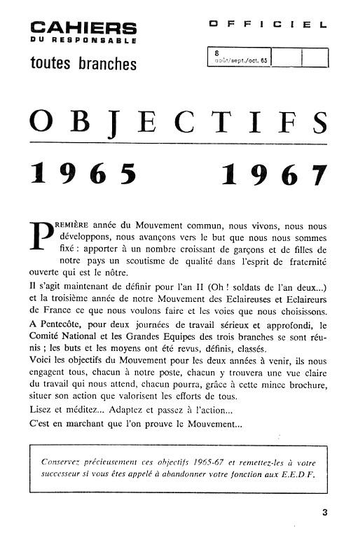 1965.08 : le nouveau Mouvement se donne des objectifs
