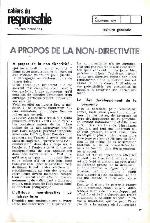 1971.11 : réflexions sur la « non directivité » dans les Cahiers du responsable