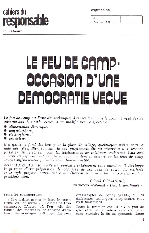 1972 : le feu de camp, occasion d’une démocratie vécue