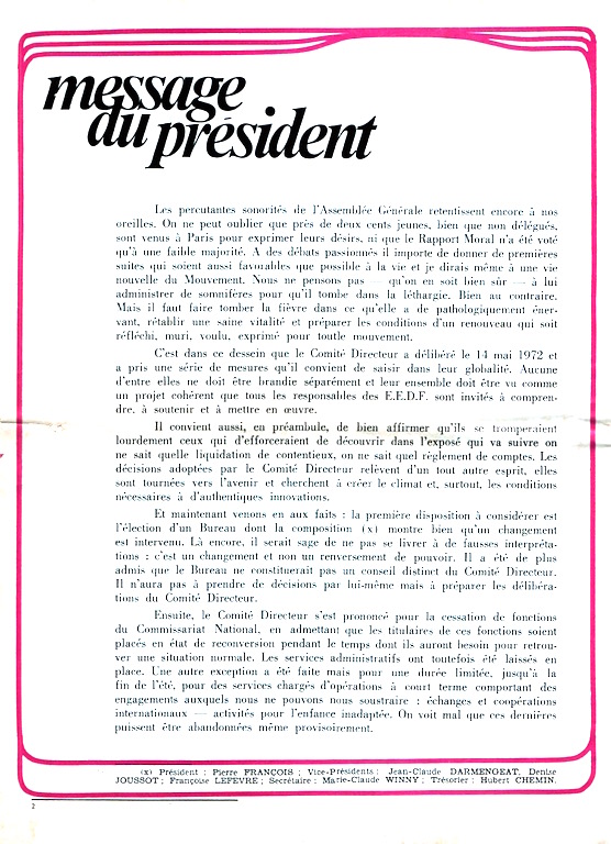 1972.10 : après l’A.G., le président et la nouvelle commissaire générale s’expriment