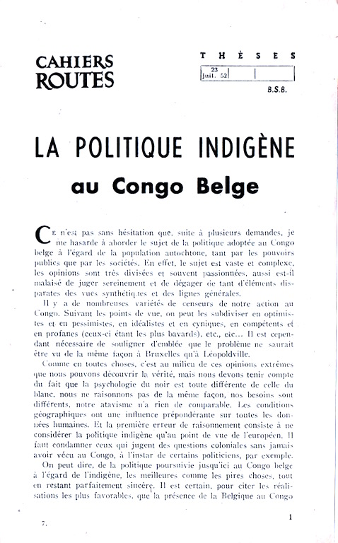 1952.07 : Les « Cahiers Route » s’intéressent au Congo Belge