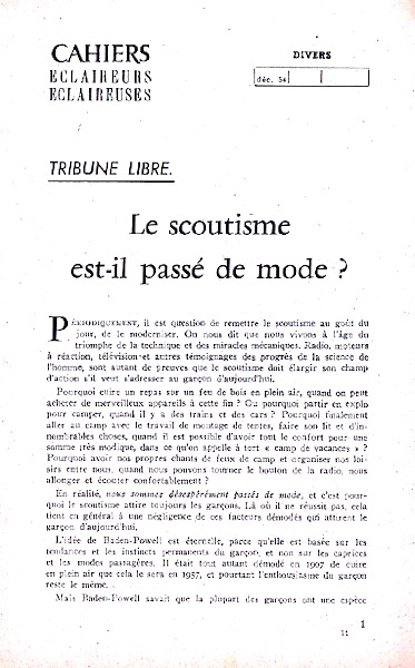 1954 : Tribune libre : le scoutisme est-il passé de mode ?
