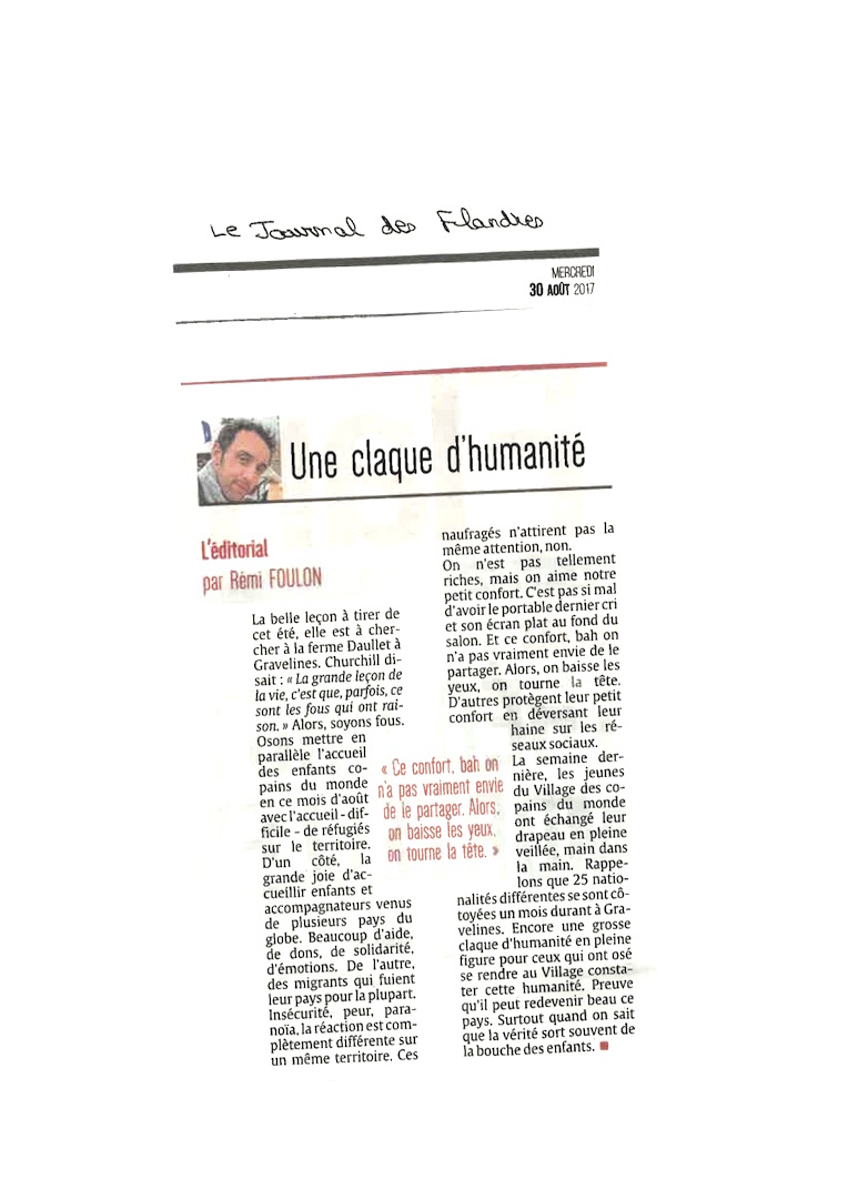 Christian Hogard, responsable du groupe et des activités du Village, nous donne quelques nouvelles des activités de l’été 2017…