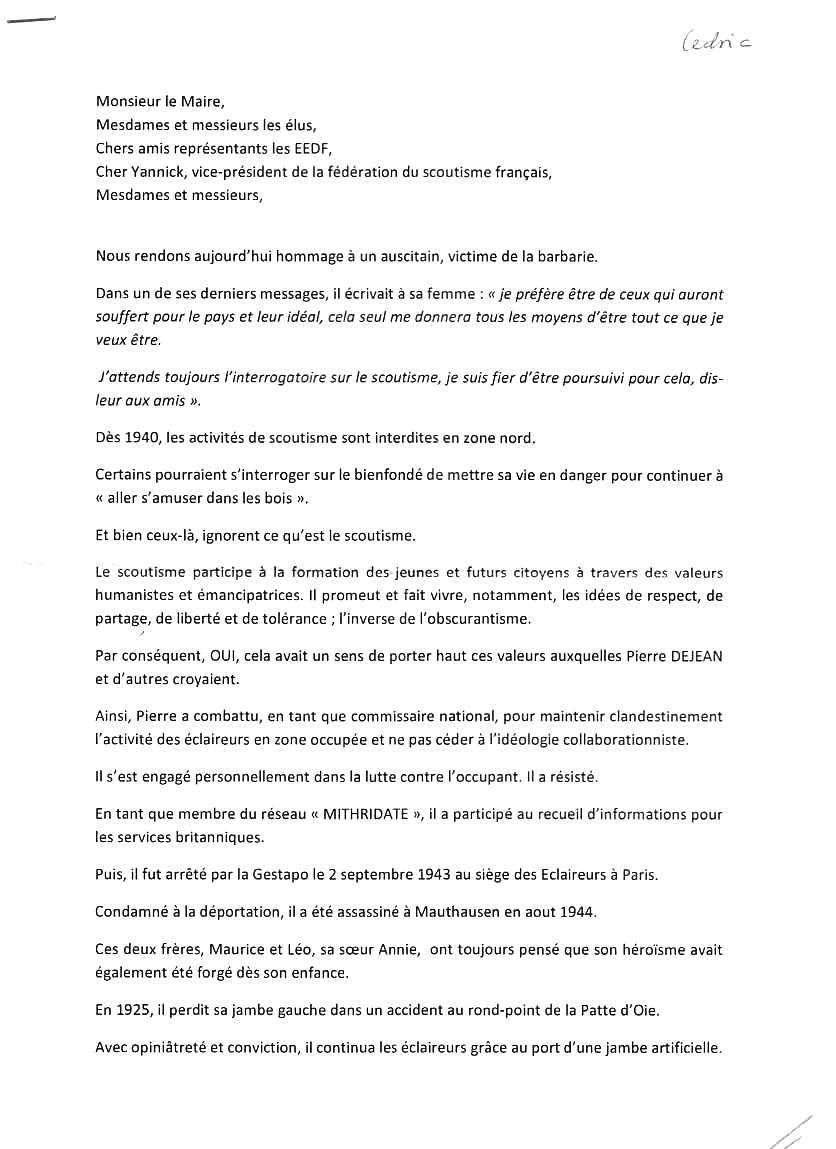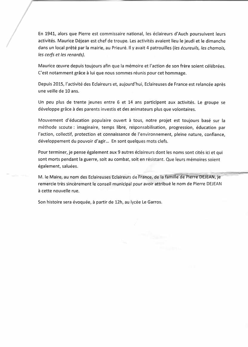 2017 : L’inauguration de la rue « Pierre Déjean » à Auch le 18 novembre