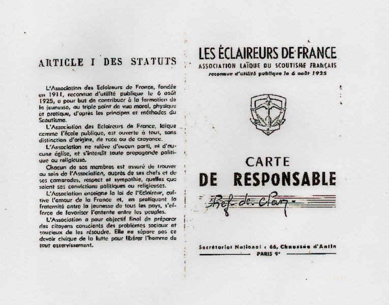 L’Association des Éclaireurs de France, laïque comme l’école publique, est ouverte à tous, sans distinction d’origine, de race ou de croyance. L’Association ne relève d’aucun parti, ni d’aucune église, et s’interdit toute propagande politique ou religieuse.