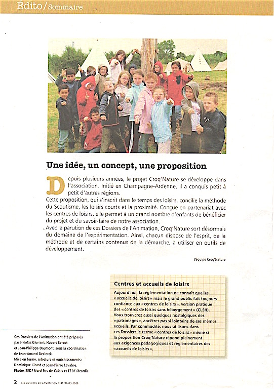 Un numéro spécial des « Dossiers de l’animation », supplément de Routes Nouvelles, est consacré à l’activité « Croq’Nature », initiée dans la région Champagne-Ardenne et proposée par quelques autres. Ce dossier est intéressant car il présente cette orientation d’action du Mouvement dans toutes ses composantes :