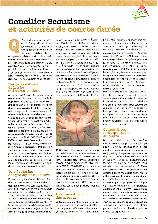 – avec des choix de mise en œuvre : « et le scoutisme là-dedans », « cinq jours pour s’éclater »,