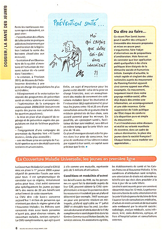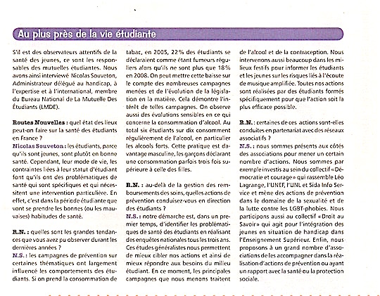 2009 : Routes Nouvelles s’intéresse à la santé des jeunes.
