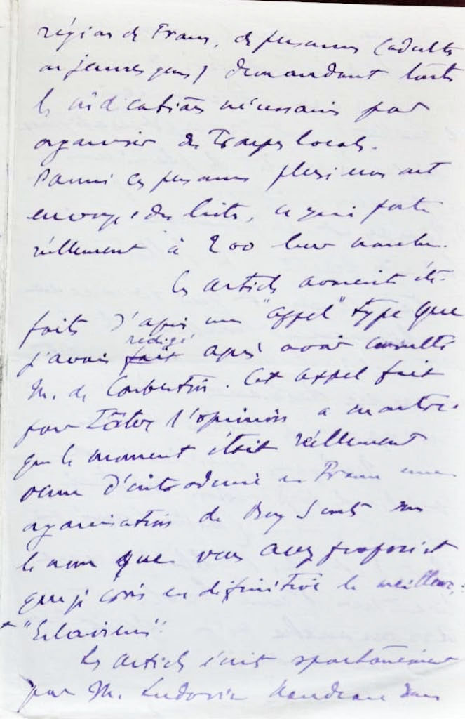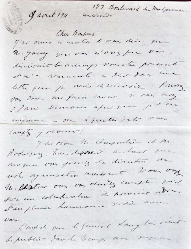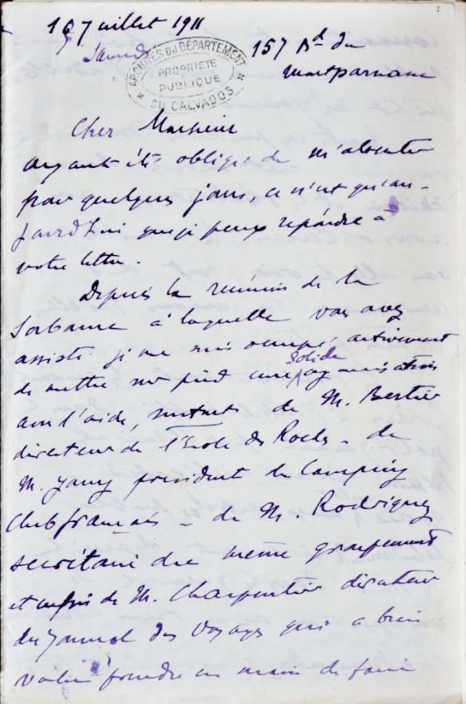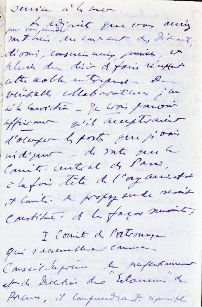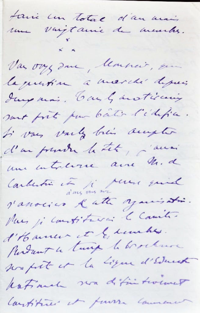 Cette nouvelle lettre, de la mi-juillet 1911, consacre peut-être la rupture avec Pierre de Coubertin puisqu’elle évoque une réunion, tenue en l’absence de ce dernier, pour proposer (ou prendre ?) quelques décisions importantes :