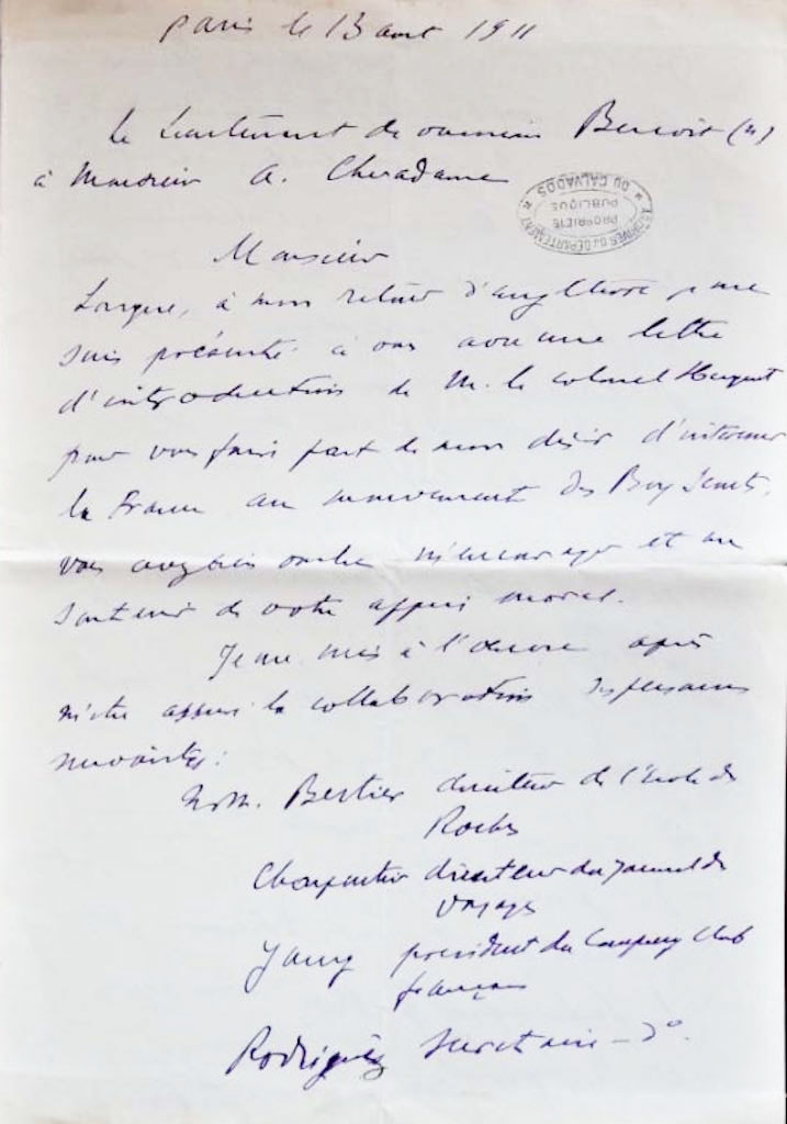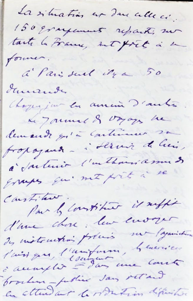 D’autres dispositions concernent les âges, l’uniforme, les instructeurs, les comités locaux, la brochure de présentation (qu’il a préparée).