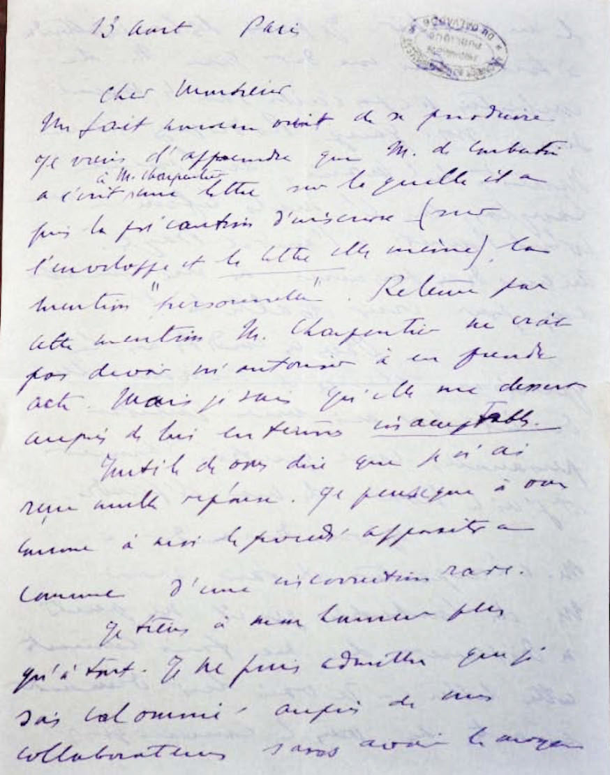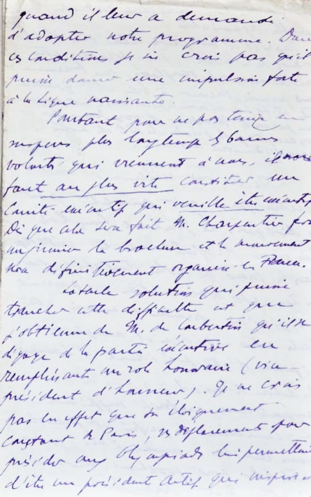 « J’aurai une entrevue avec Monsieur de Coubertin et je pense qu’il acceptera »… mais, le 13 août, « je viens d’apprendre que Monsieur de Coubertin… »