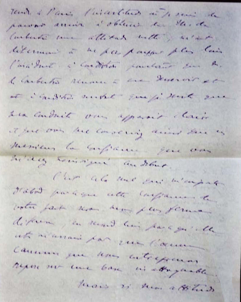 « Grâce à mon éloignement de M. de Coubertin, au peu de temps dont je pouvais disposer, à l’absence de mes meilleurs amis, il m’est impossible de dissocier (?) la question Coubertin comme je l’aurais voulu. La réponse qui s’est fait attendre jusqu’au dernier moment ne m’a donné qu’une demi satisfaction.