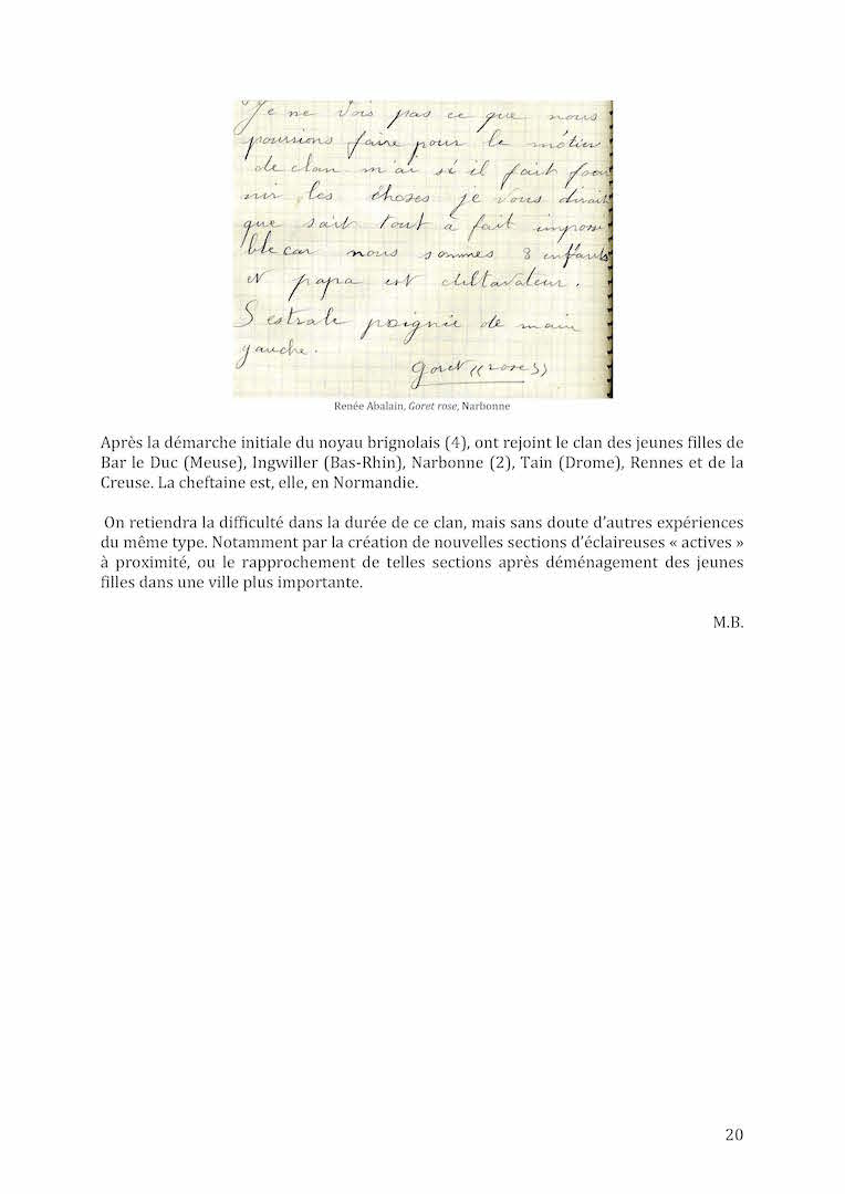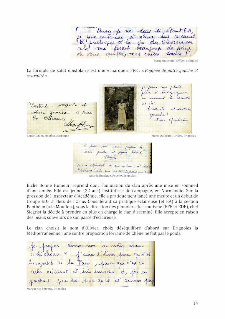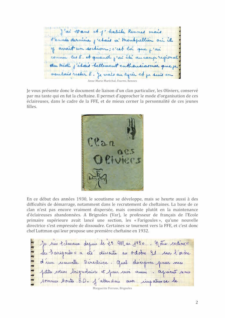 À l’occasion de la « journée de la mémoire du scoutisme laïque, le 24 novembre 2018, notre ami Michel Bouvier nous a proposé une présentation du Clan des Oliviers animé, dans les années 30, par sa tante.
