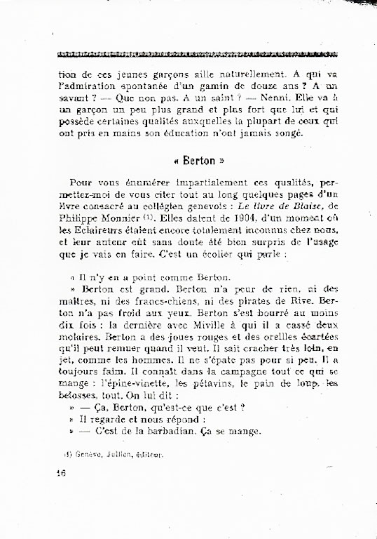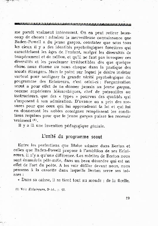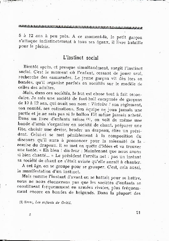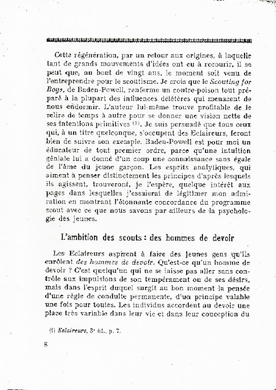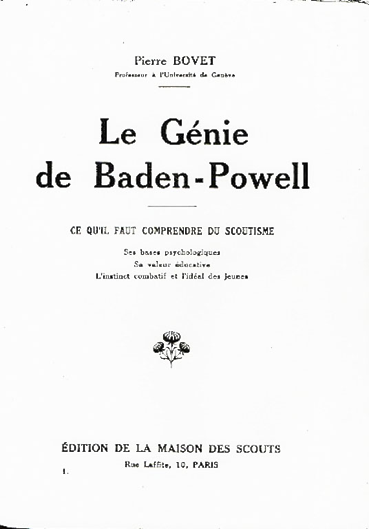 Pierre Bovet, psychologue et éducateur suisse, présente ses conclusions sur la méthode scoute.