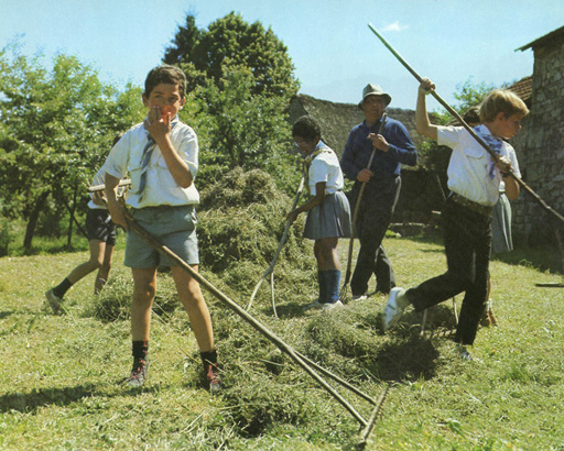 Reste le problème des grandes vacances, il n’y a pas d’obligation de service pour les éducateurs l’été. L’I.N.J.S. n’est pas le seul établissement à fermer ses portes en juillet et août, des élèves d’autres établissements doivent trouver des accueils pour l’été. Première étape, nous décidons donc d’ouvrir nos camps d’été, conservés, à des jeunes de toutes origines, scouts ou non, de tous établissements. Ce qui conduit à la création d‘un lieu qui sera le Fieux près Saint-Goussaud dans la Creuse ; les sourds y accueilleront des entendants appartenant à des unités E.E.D.F. (et non l’inverse). Cette « coéducation sourds-entendants » sera le principe pédagogique directeur de ces séjours. Ces séjours « ouverts » resteront d’abord très « scouts » mais vont, petit à petit, s’éloigner des moyens éducatifs classiques du scoutisme. Si, au départ, les responsables ont pratiqué le scoutisme, ce n’est plus le cas après quelques années.