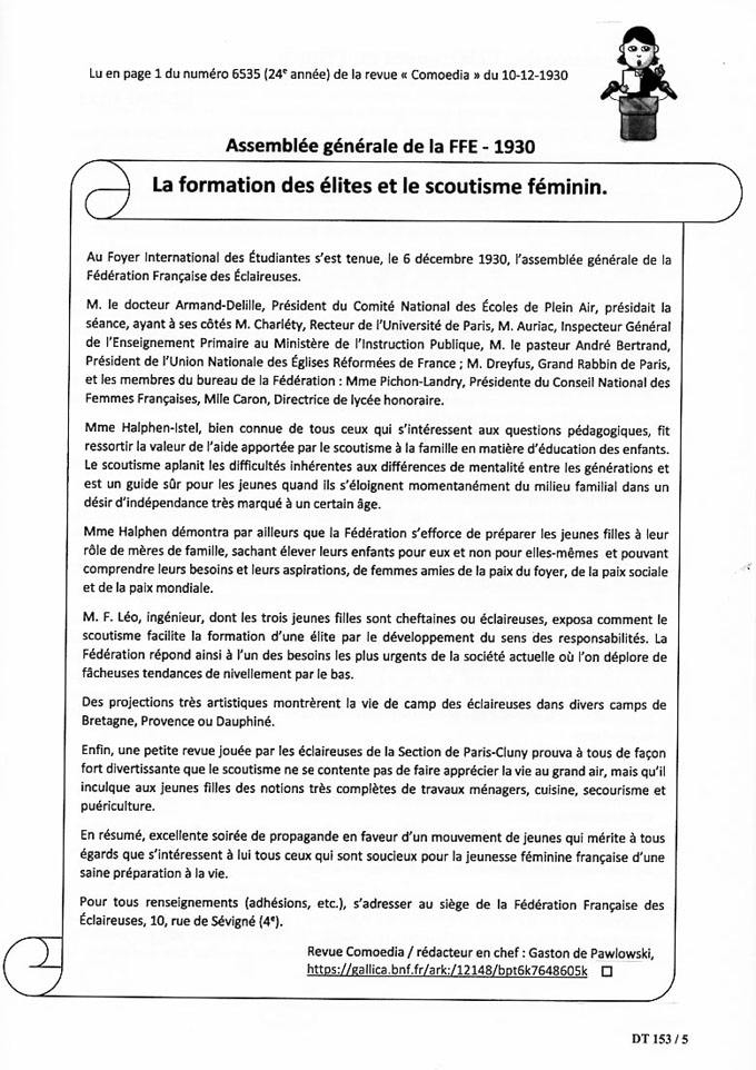 … Un article de la revue Comoedia retrouvé par le D.T.