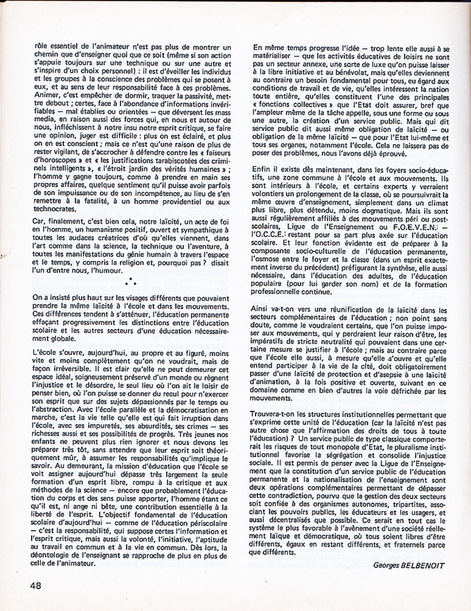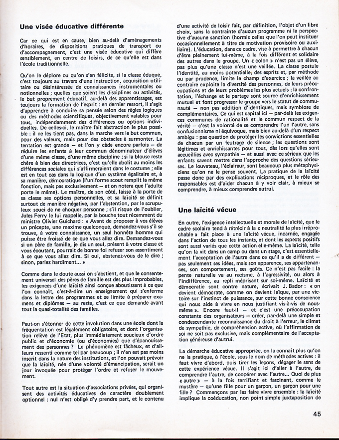 1970 : Les « cahiers pédagogiques » évoquent la laïcité