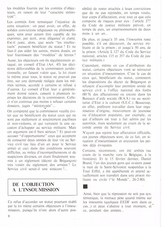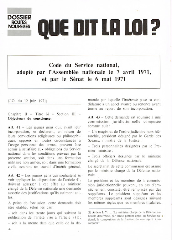 1980.04 : Routes Nouvelles évoque l’objection de conscience