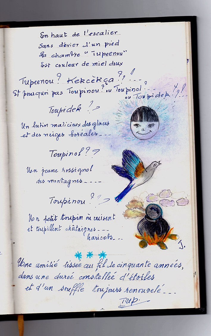 Et pour ceux qui se poseraient encore la question de l’orthographe et de la signification de son totem, ce petit mot sur une page du « livre d’or » de la maison d’Adeline Éloy-Gavazzi dans le Gers :