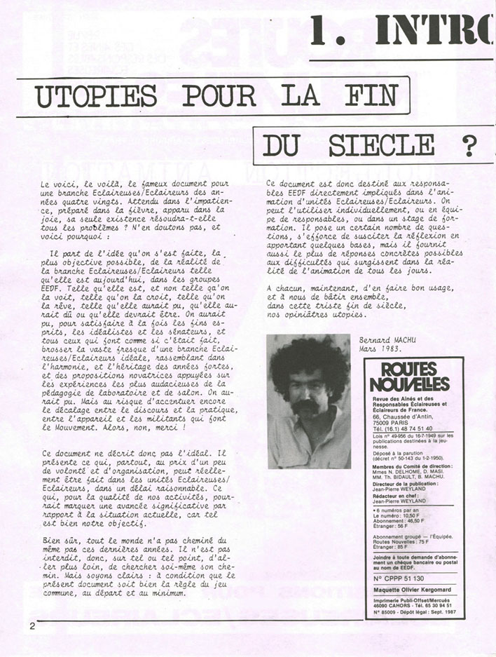 Dans une période d’économie où les revues n’ont plus droit à la couleur, Routes Nouvelles publie une réédition d’un cahier paru en 1983. Bernard Machu, délégué général en 1983, était en 1987 président de l’association et nous a confirmé son accord pour cette réédition…