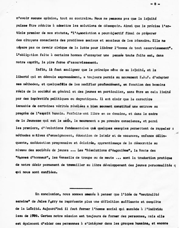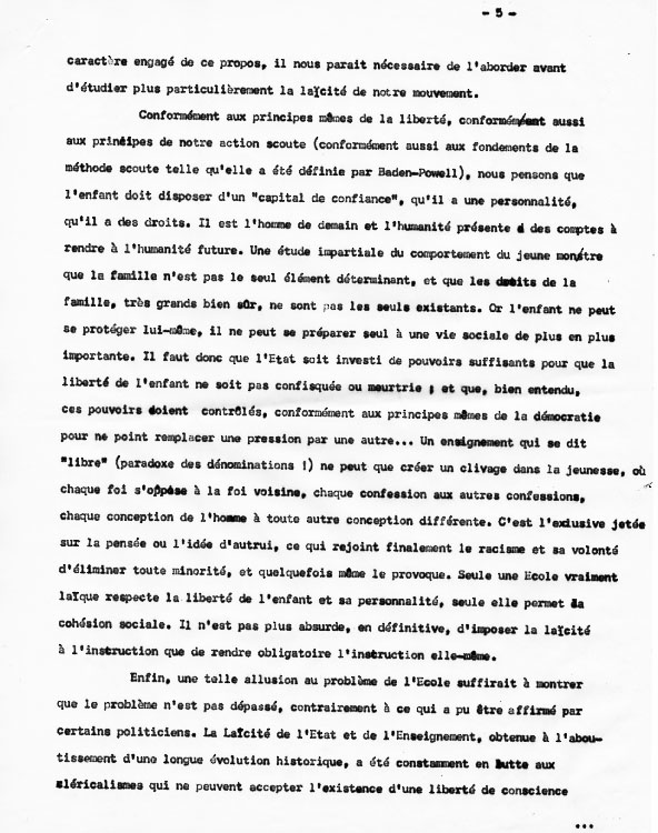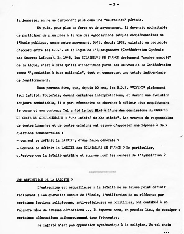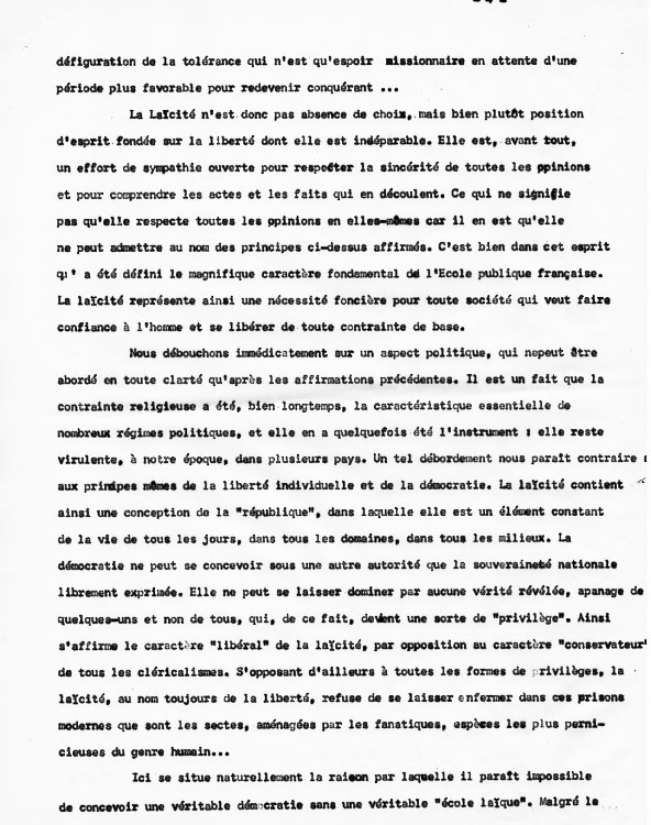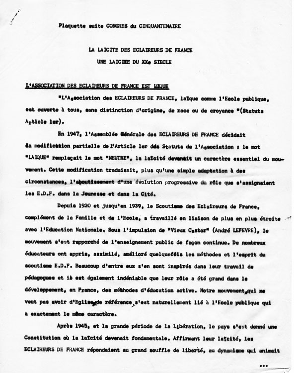 1961 : Le compte rendu de la commission « laïcité » du congrès du Cinquantenaire