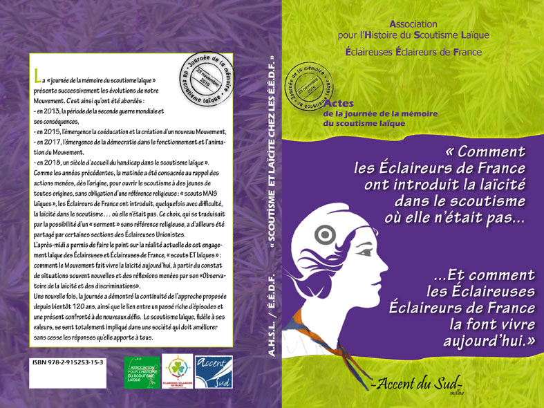 Les actes de cette journée ont été mis en forme par Philippe Bernat, ancien responsable local et membre de l’équipe d’animation de Bécours. Ils ont été mis à la disposition des structures EEDF et des membres ou amis de l’AHSL à partir du 13 févier 2020.