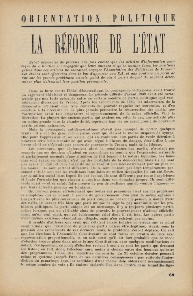 1946.02 et 03 : « Le Routier » aborde la réforme de l’État