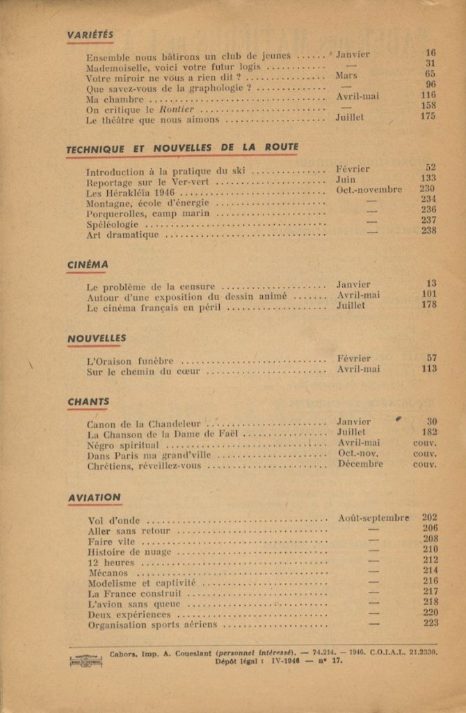 Ce contenu est extrêmement riche et très varié. On peut le constater à la lecture des « tables des matières » de la revue, par exemple en 1946.